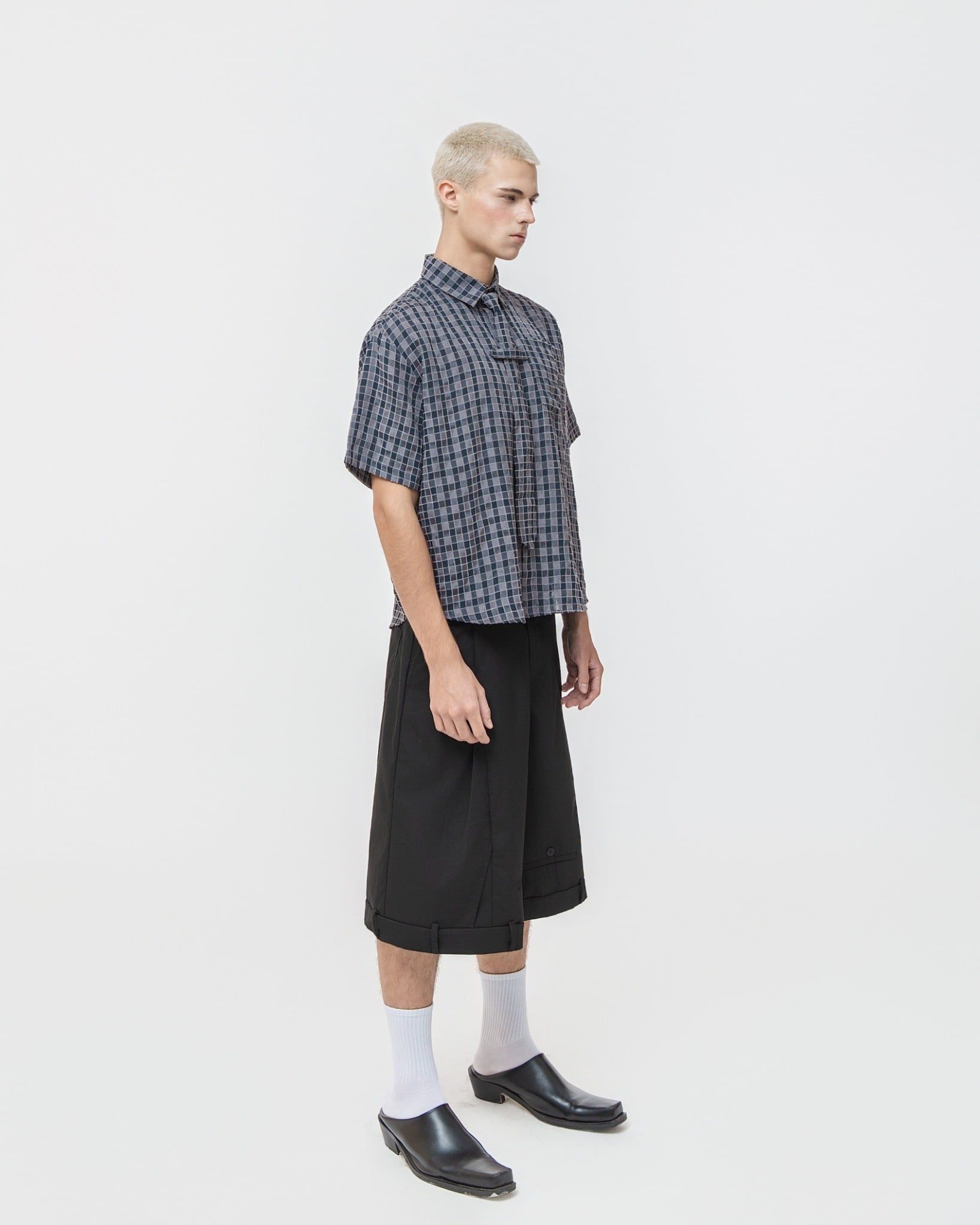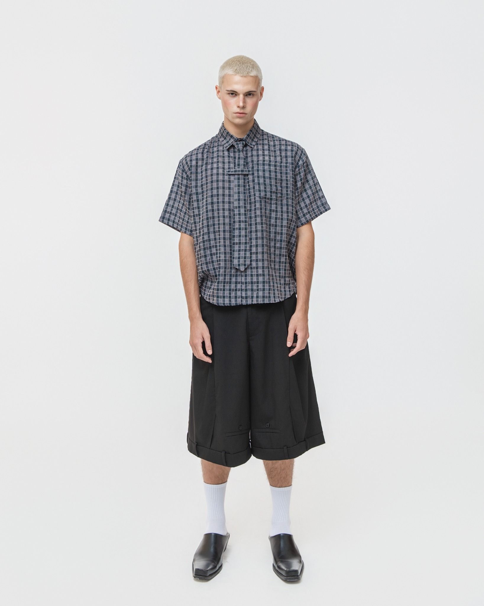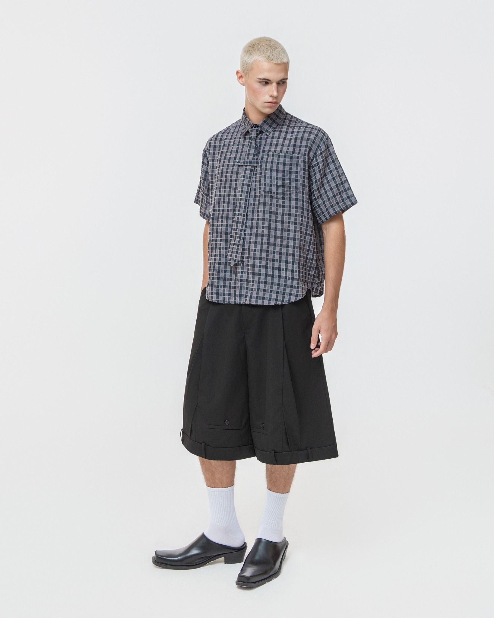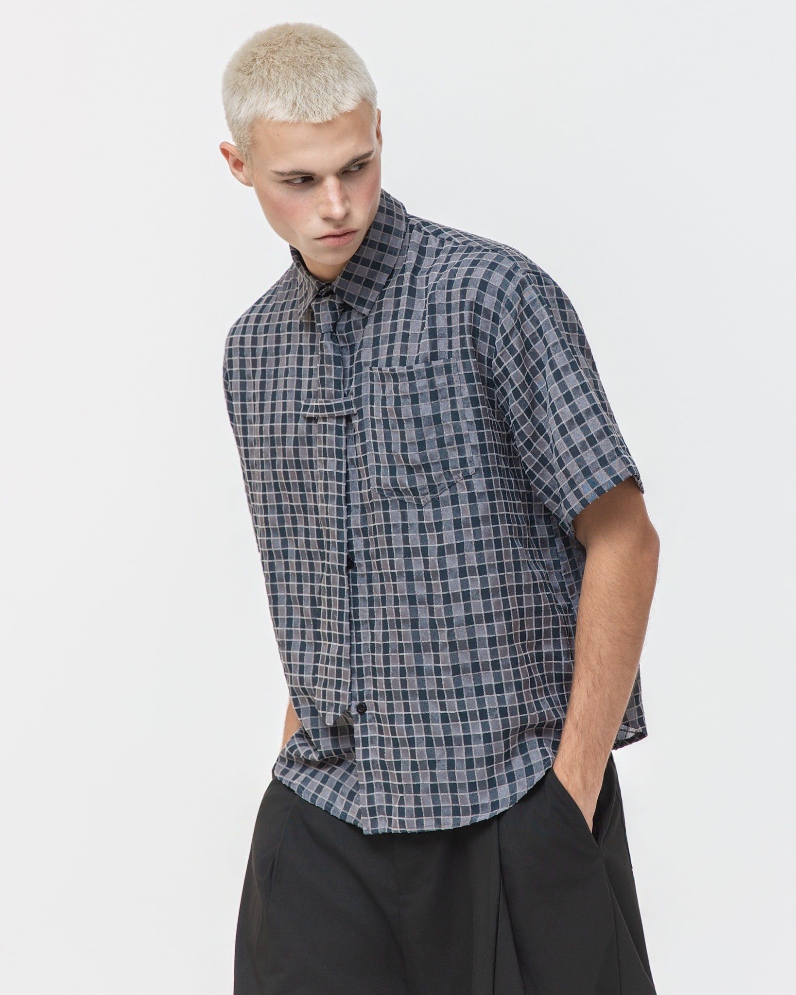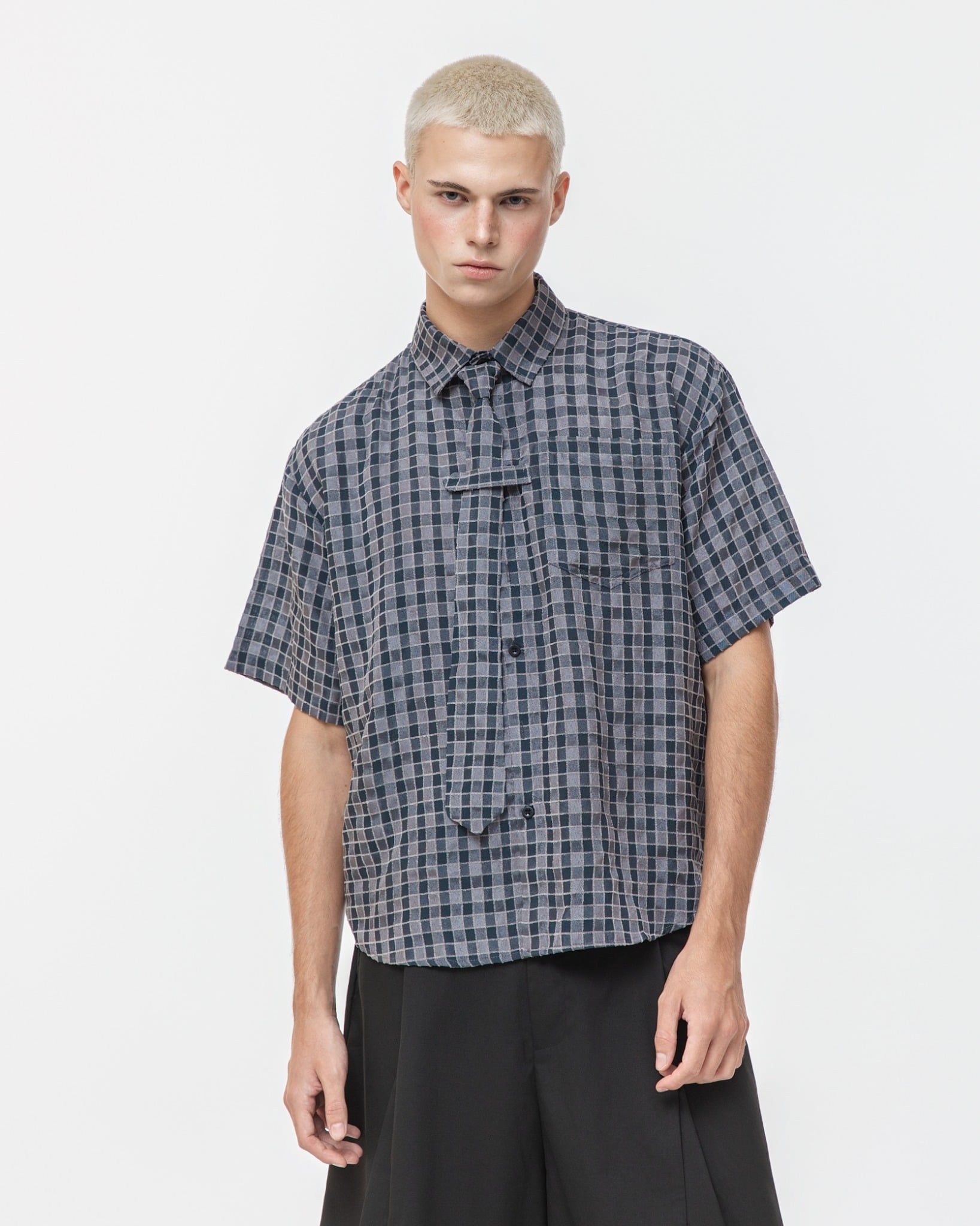 EVIRO SHIRT GREY – Thông tin sản phẩm Chất liệu: Vải xốp dệt nổi, bề mặt có độ texture nhẹ, thoáng khí Màu sắc: Caro vàng / Caro nâu / Caro xám Thiết kế: Sơ mi dáng suông, tay ngắn. Điểm nhấn chi tiết nẹp cổ buộc dây lấy cảm hứng từ cà...