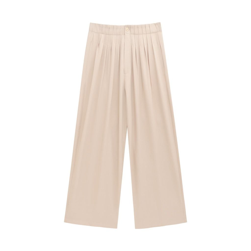 ▪️ Thiết kế: Quần dáng wide-leg với phom suông rộng và ly xếp sâu phía trước, tạo độ rủ tự nhiên và hiệu ứng chuyển động mềm mại khi mặc.