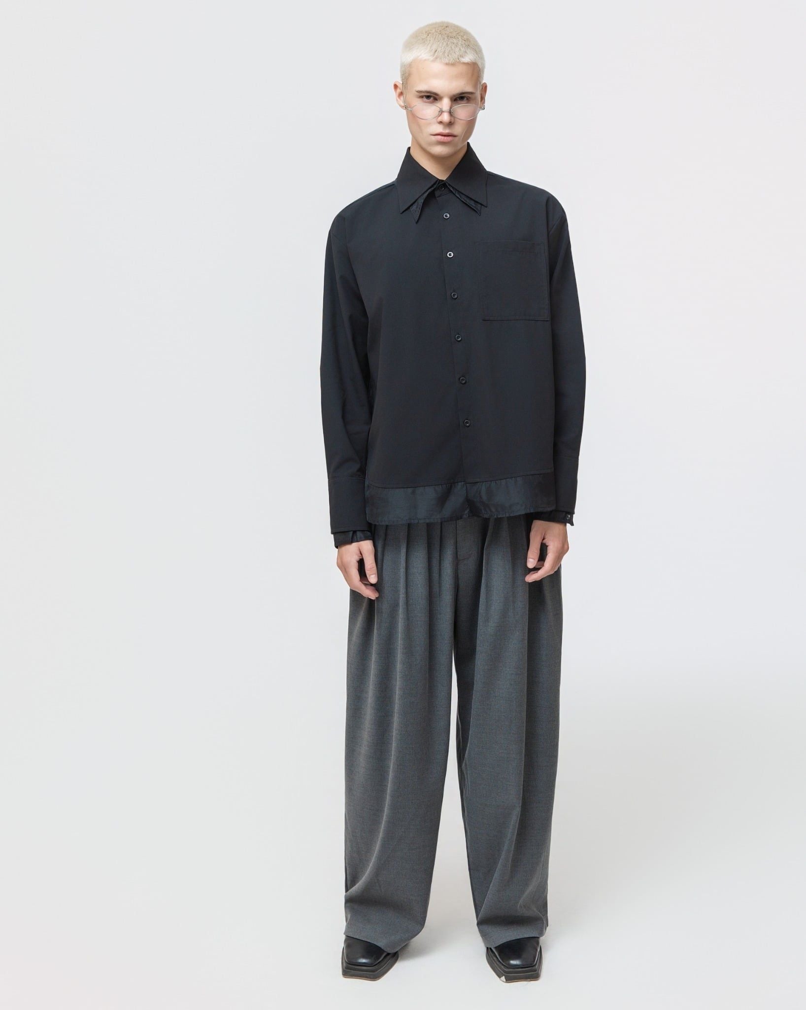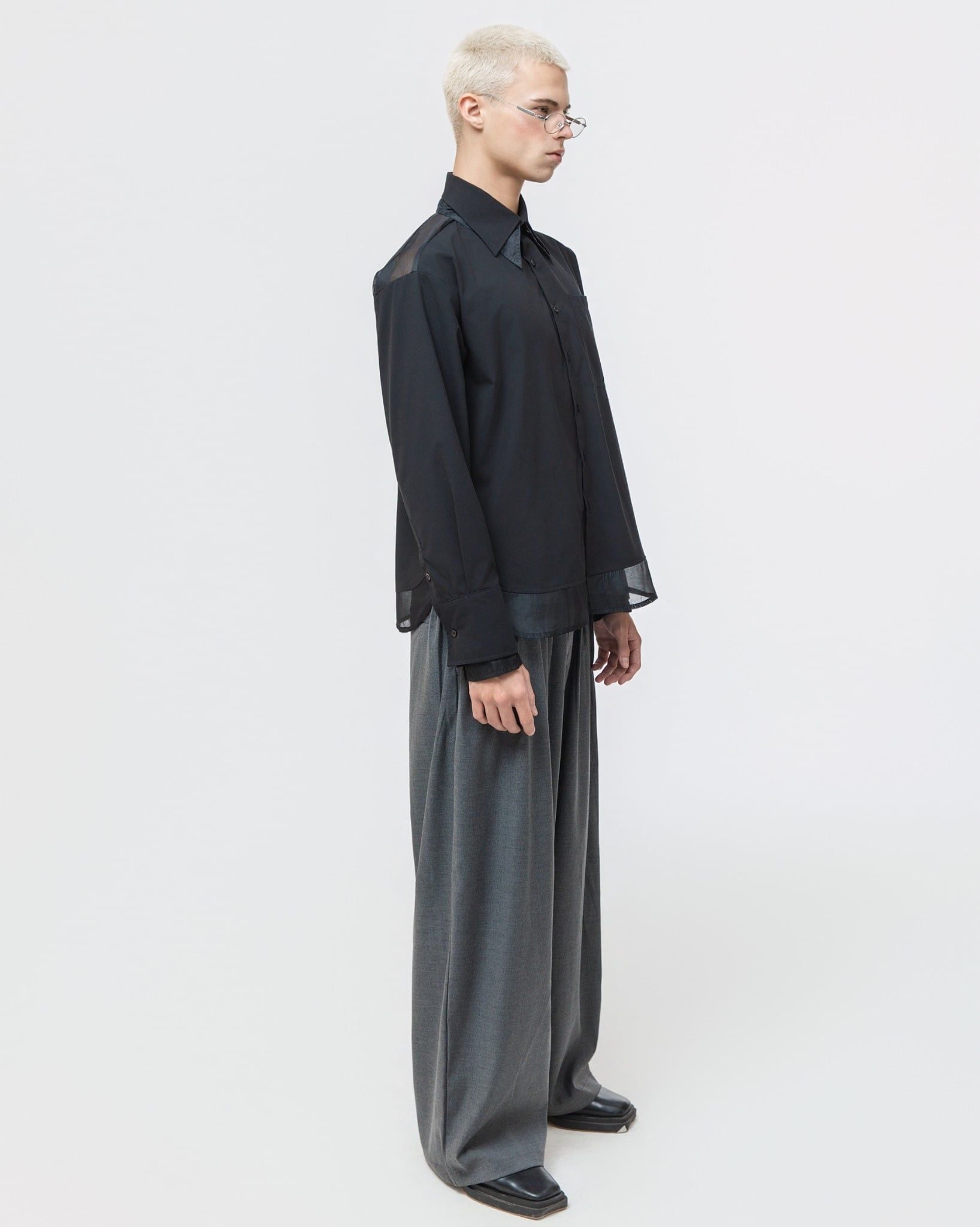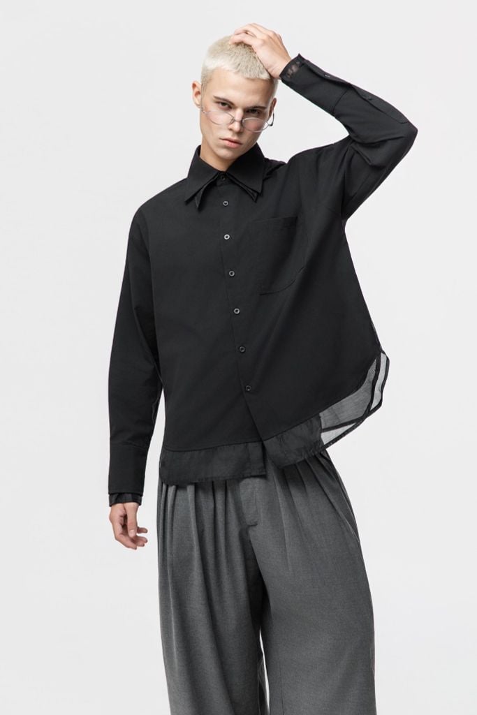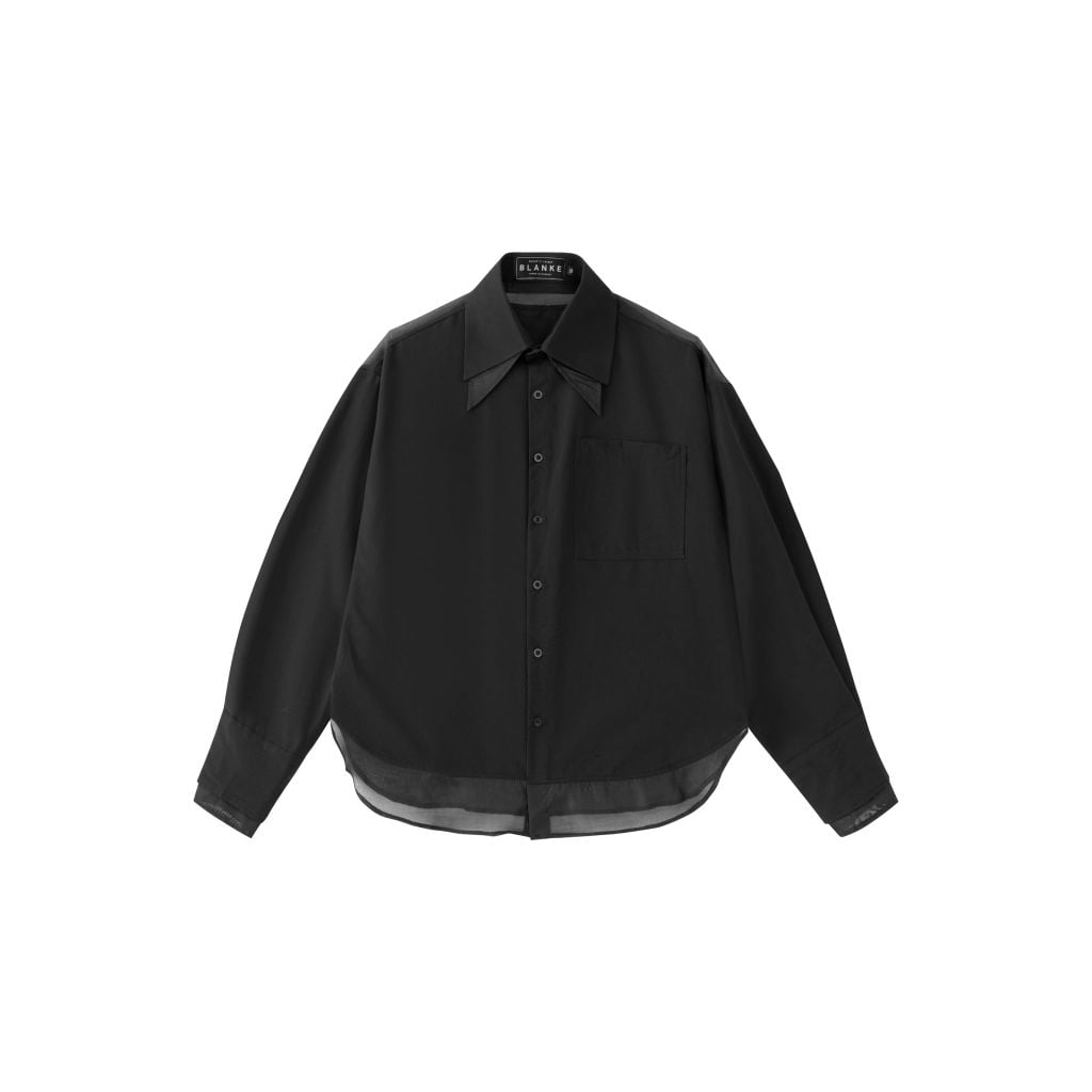 THANATOS SHIRT - Thông tin sản phẩm▪️ Chất liệu: Chất Liệu Kate Oxford Phối Organza▪️ Màu sắc: Màu trắng/Đen▪️ Thiết kế: Thiết kế tối giản tập trung vào cấu trúc cổ bản nhọn thanh thoát, hàng nút gọn gàng và túi ngực vuông tạo điểm nhấn, phối Organza tạo hiệu...