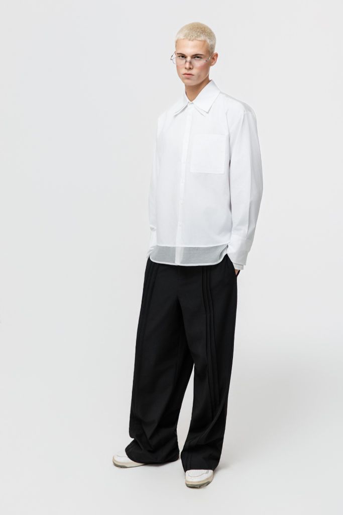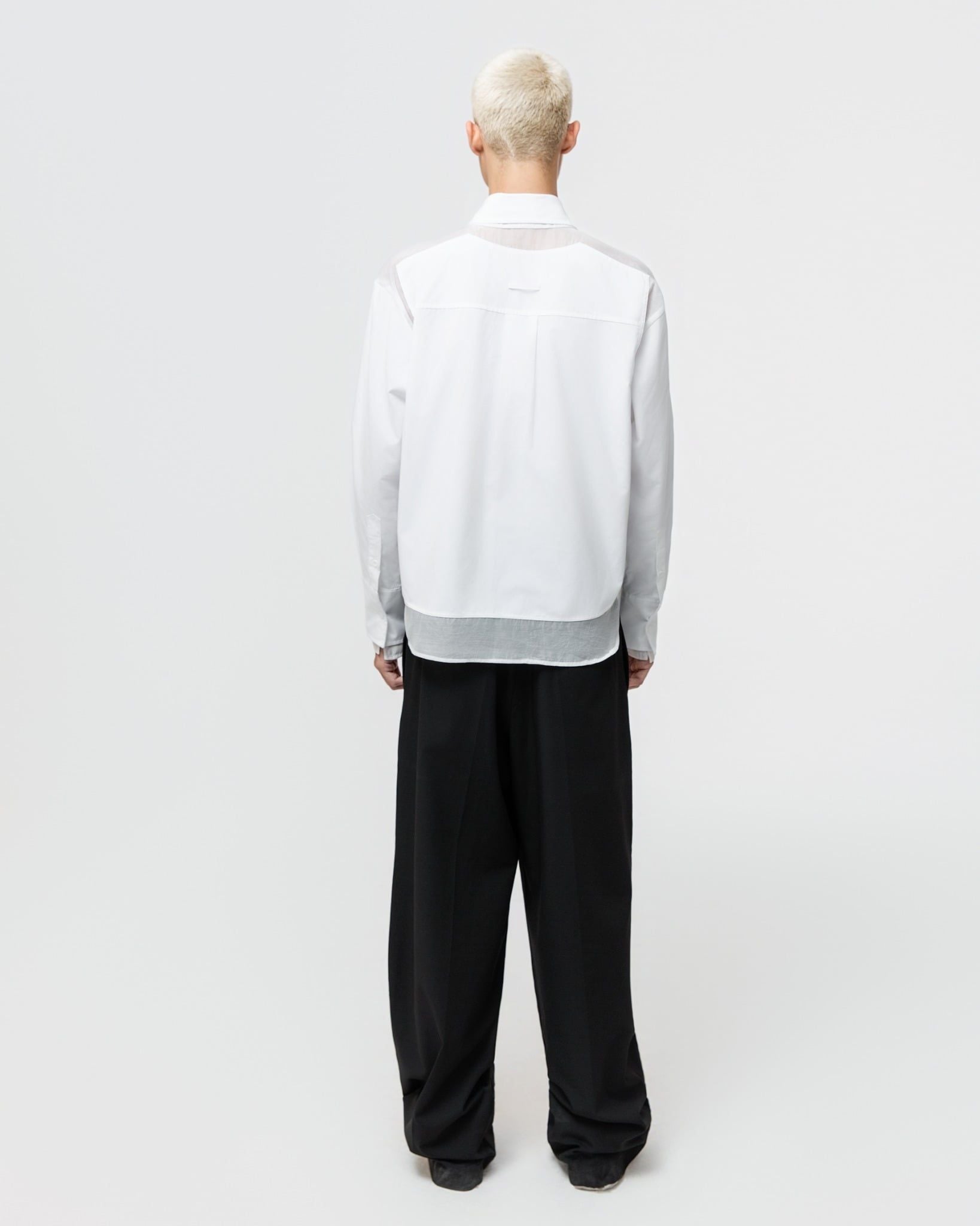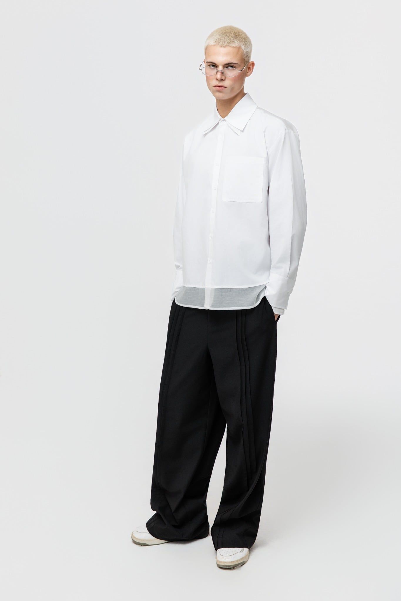 THANATOS SHIRT - Thông tin sản phẩm▪️ Chất liệu: Chất Liệu Kate Oxford Phối Organza▪️ Màu sắc: Màu trắng/Đen▪️ Thiết kế: Thiết kế tối giản tập trung vào cấu trúc cổ bản nhọn thanh thoát, hàng nút gọn gàng và túi ngực vuông tạo điểm nhấn, phối Organza tạo hiệu...